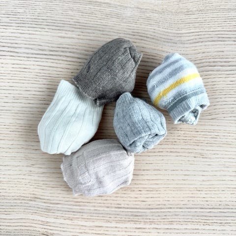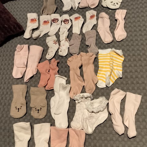 Yhdellä vauvalla käytössä olleet sukat.