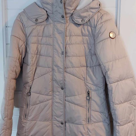 Luhta Expedition 360 naisten talvitakki, koko 36. Väri on sinapinkeltainen. Hupun karvareunuksen saa irroitettua, samoin kuin koko hupun saa irti. Edessä on vetoketju ja nappikiinnitys. Lisäksi takissa on useita vetoketju- ja läppätaskuja. Takissa on pehmeä vuori ja topattu rakenne, joten se on todella lämmin.