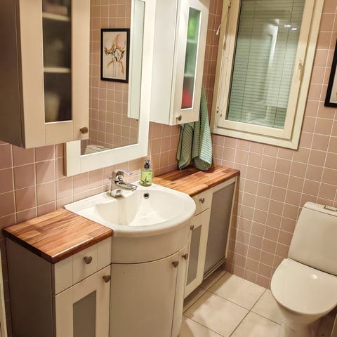 Käytetyt, mutta siistissä kunnossa olevat valkoinen allaskaappi ja posliiniallas. Leveys 46 cm, syvyys 44 cm ja korkeus 64 cm. Irrotettu paikaltaan, joten ovat valmiina haettavaksi Jyväskylästä Vaajakoskelta. Valopeili on myytävänä erikseen.