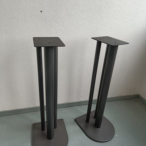 Myydään Norstone Stylum 3 mattamusta kaiutinjalustapari. Korkeus 80 cm ja paino hiekkapussien kera 7,5kg/kpl.