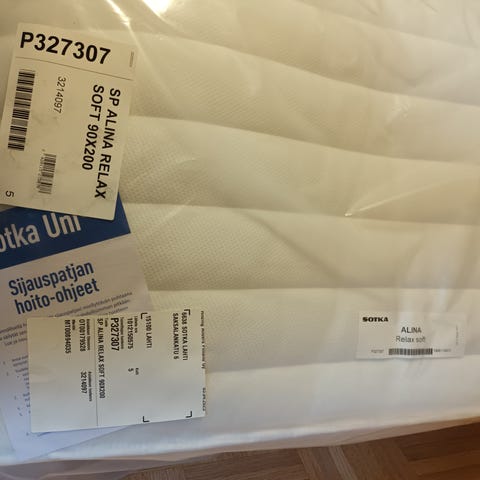 Lähes uuden veroinen. Täyte 8 cm kimmovaahto. Ei ole yhtä kova kuin Tempur tms älyvaahdot, mutta riittävän jämäkkä kuitenkin. Eikä menetä muotoaan käytössä, kuten esim vaahtomuovi yms.