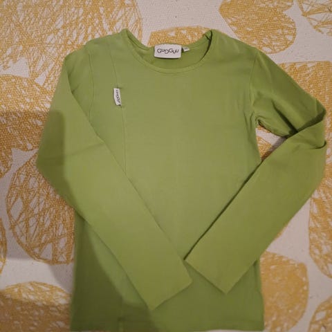 - Kaksiväriset leggingsit, musta ja vihreä. Jonkin verran haalistuneet ja toisen polven kohdalla tahraa.