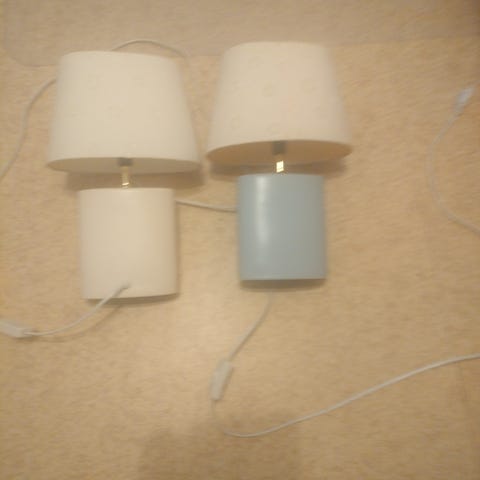 Kaksi pöytälamppua metallijalalla. Jalan korkeutta voi säätää pidemmäksi. Min korkeus 60cm.