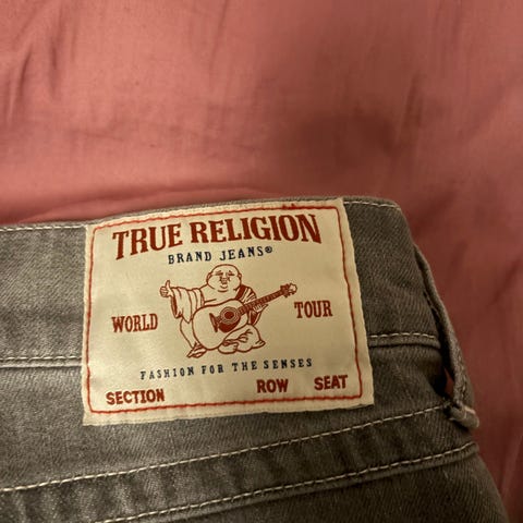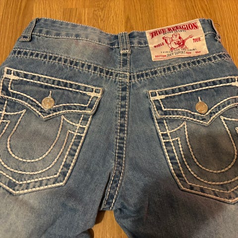 True Religion Joey Super T miesten farkut. Väri musta, kulutettu pesu. Materiaali denim. Koko S, vyötärökoko W30. Kontrastivalkoiset tikkaukset ja näyttävät takataskut brodeeratuilla yksityiskohdilla. Sopivat arki- ja vapaa-ajan käyttöön. Löytyy myös siniset täysin samallaiset