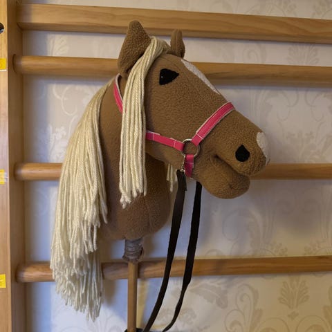 Taikakepparista ostettu keppihevonen (uuden hinta ollut 135eur). Myydään keppi paikallaan ja kuvan varusteilla. Pieni himmeä likatahra, saattaa lähteä puhdistamalla kokonaan pois - näkyy kuvassa.