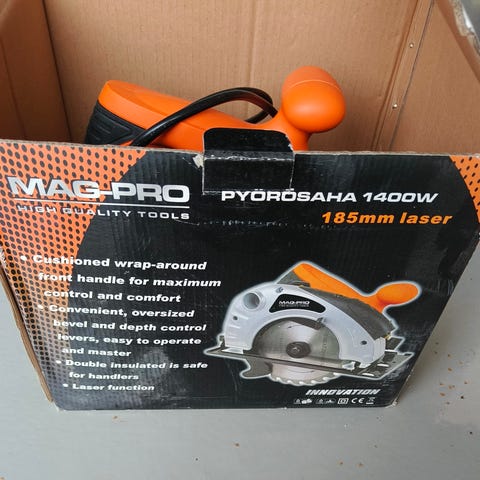 Käsisirkkeli. Sisältää sahauslinjan näyttävä laseri.