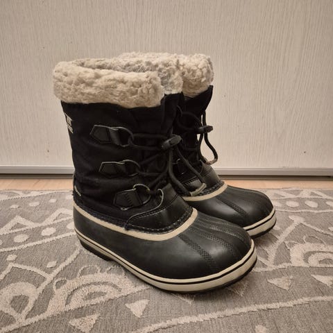 Sorel lasten talvisaappaat tytöille, koko 33. Varren väri pinkki ja alaosa musta. Saappaissa on kuminen, kuvioitu ulkopohja sekä vedenpitävä alaosa. Yläosa on tekstiilimateriaalia, jossa kiristettävä nauha varren suulla ja tarrakiinnitys jalkapöydän päällä. Vuorimateriaali on pehmeä ja lämmin, soveltuu kylmiin talvikeleihin. Kenkä on suunniteltu lasten jalalle ja tarjoaa suojaa ja lämpöä ulkoleikkeihin ja arjen käyttöön talviaikaan.