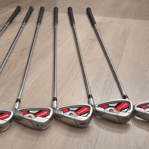 Myydän kuvanmukainen Tour Edgen rautasetti P-5. Mukaan halutessasi kaupan päälle korjausta vaativa aloittelijan rauta-7.