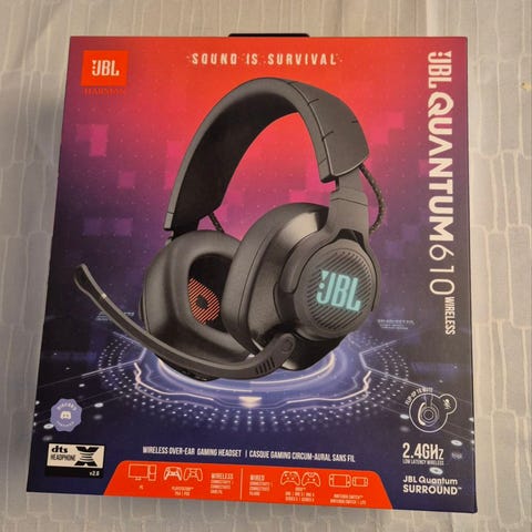 JBL Quantum 800 pelikuulokkeet. Over-ear-mallinen pelikuuloke, jossa on langaton 2,4 GHz -yhteys ja Bluetooth-yhteys. Kuulokkeissa on irrotettava tai kääntyvä puomimikrofoni, aktiivinen melunvaimennus sekä pehmustetut korvakupit ja säädettävä sanka. Soveltuu käyttöön tietokoneen ja yhteensopivien pelilaitteiden kanssa valmistajan ohjeiden mukaisesti. Väriltään musta.