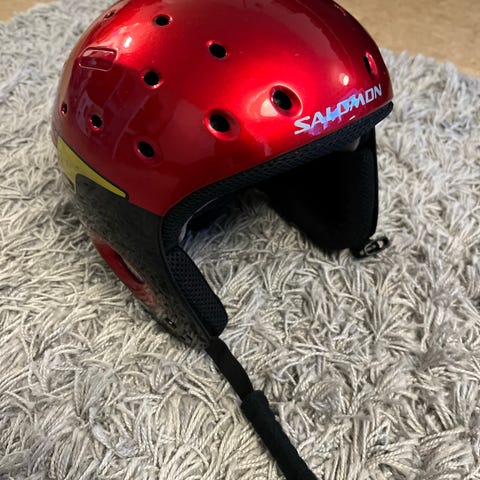 Siististi pidetty täysin ehjä musta Salomonin laatukypärä jossa visiiri. Käytön jälkiä, mutta siisti ja visiiri naarmuton.