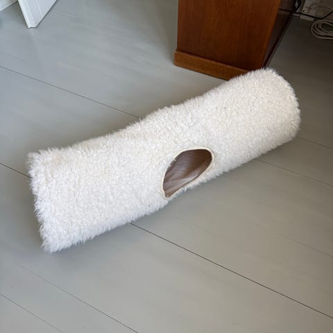 Royal Canin kissan leikkitunneli punainen. Tunneli on kangasmateriaalia ja sen sisäpinta on tummempi. Toisessa päässä on narulla roikkuva muovinen pallo leikkiä varten. Tunneli voidaan painaa kasaan säilytystä varten. Soveltuu kissan leikki- ja piilopaikaksi sisätiloihin. Halkaisija 26 cm, pituus avattuna 48 cm.