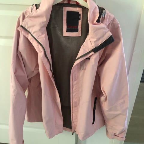 Valkoinen Didriksonin toppatakki koko 42. Aran värin vuoksi muutama tahra/pinttymä