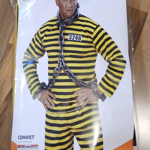 Raidallinen unisex vankiasu naamiaisasuksi. Asuun kuuluu pitkähihainen paita ja pitkälahkeiset housut mustavalkoisilla raidoilla. Sopii esimerkiksi naamiaisiin tai teemapukeutumiseen. Kuvassa näkyvät jalkaraudat kuuluvat pakettiin
