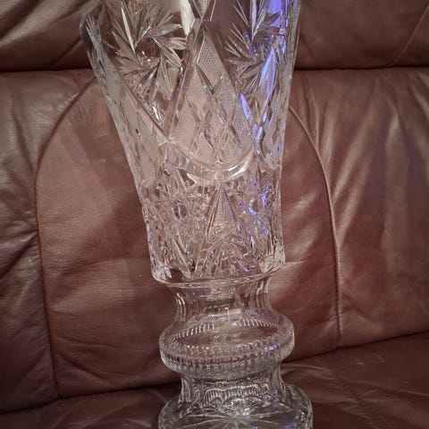Lasinen kristallimaljakko.