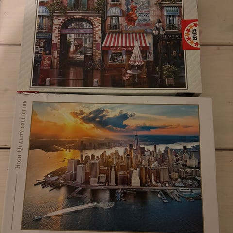Myydään hyvässä kunnossa olevia palapelejä. Hinnat 5-7 euroa/kpl, paitsi 6000 tuhannen palan palapeli 20 euroa. Katso kaikki kuvat. Mieluiten nouto, mutta voin harkita myös postitusta. EI TORIDIILIÄ!