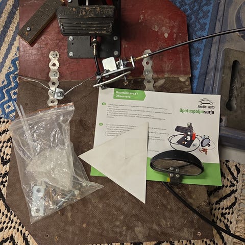 Opetuspoljinsarja valmiiks kiinnitetty levyyn ja sivupeili.