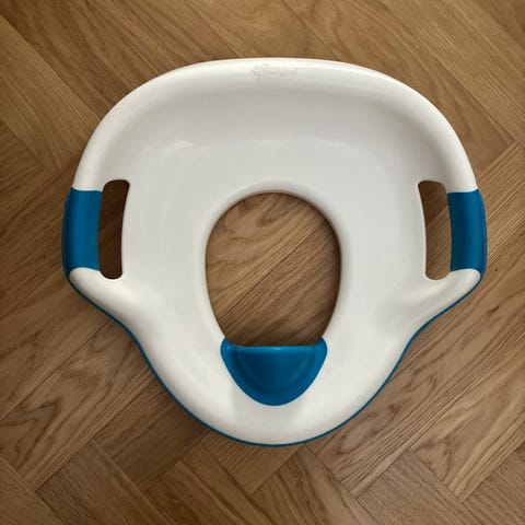 Lasten wc-istuimen supistaja. Valkoista ja punaista muovia. Sopii tavallisen wc-istuimen päälle pienentämään istuimen aukkoa lapselle sopivaksi. Muotoiltu istuinosa ja korotettu etuosa. Pinta on helppo puhdistaa kostealla pyyhkeellä tai vedellä ja miedolla pesuaineella.