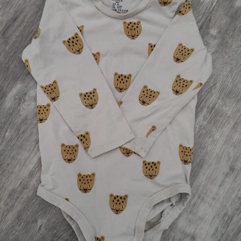 Lindexin viidakkoaiheinen body. Koko 86, tuplanepparit. Hihansuissa pienet tahrat (kts. viimeinen kuva) ja kokotiedot kuluneet. Muutoin en löydä moitteita, yhdellä käytetty, siisti kunto 🦁