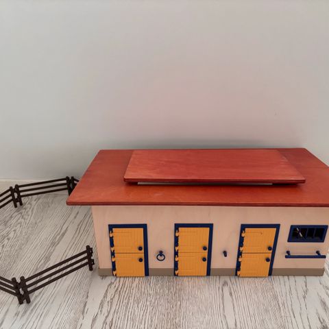 Schleich leikkitalli hevosille. Muovinen tallirakennus, jossa on useita karsinoita, avattavat ovet ja portit sekä ulkotarhoja aitauksineen. Sopii Schleich-hevosfiguureille ja muille vastaavan kokoisille eläinlelufiguureille. Tallissa on yksityiskohtainen sisä- ja ulkopuoli, kuten ikkunoita ja kattoikkunoita, jotka mahdollistavat leikin eri puolilla rakennusta. Kunto hyvä. Irtoavassa katossa jalat hiukan heiluu, mutta toimii ja pysyy pystyssä.