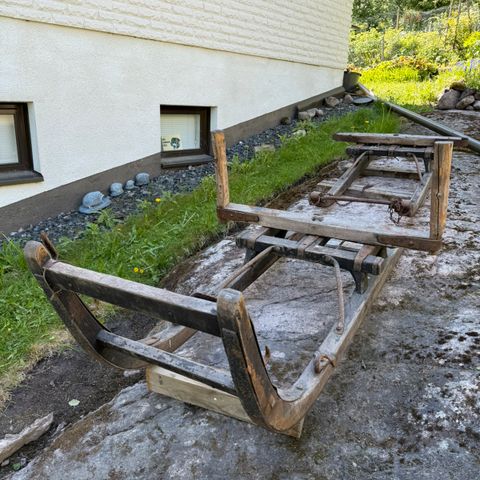 Puinen reki jarrulla vetoharrastukseen. Ehjä runko, mutta istuinosaa kannattaa parantaa. Meillä siinä on voinut istua max 50-60kg kyydittävä ja istumaan pitää asettua rauhassa ei pudottautua rojahtamalla. Testiajo mahdollisuus sovittavissa. Jalakset hyvässä kunnossa, luistopohjat uusittu.