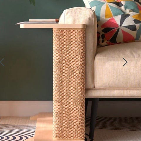 Uutta vastaavassa kunnossa Catmaxin pieni taso nro 160: koivuvaneria, päällystetty beigellä huopakankaalla, halkaisija 20cm. Oli vain hetken käytössä kissavanhuksen aputasona, ei käytön jälkiä.