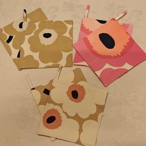 Myydään uudet Ketunmarja Unikko patalappu ja patakinnas. Laput kiinni.
