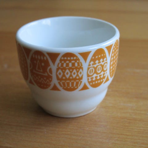 Kupissa noita kissan kanssa ja noidan piparkakku mökki. Suora malli, jossa alhaalta tulevia uurteita. Rivassa näyttää kuin olisi hiusmurtuma, muuten ehjä ja siistikuntoinen kuppi. Korkeus 5,5cm ja suuaukon halkaisija 5.5cm.