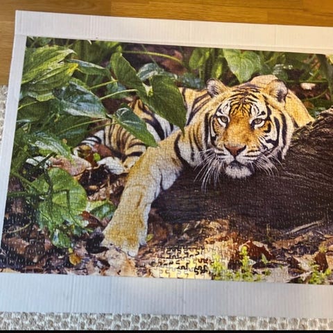 Kaksi reunapalaa puuttuu ja tummat / mustat värikohdat tosi hankalat.