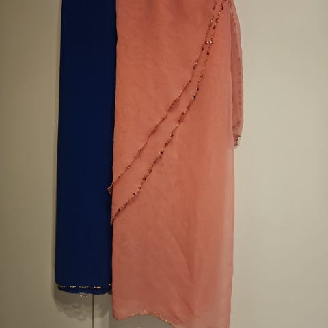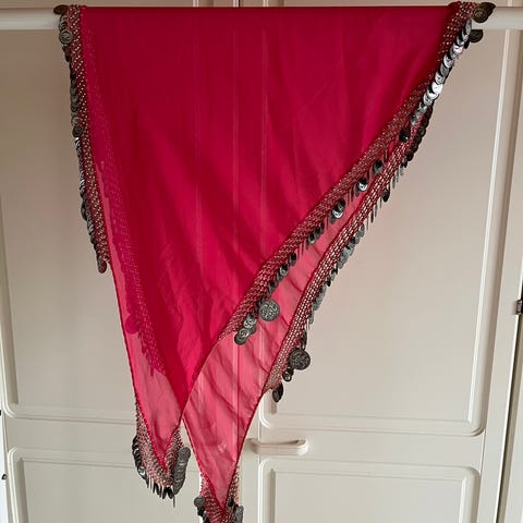 Kolmiohuivit tanssiin, juhlaan naamiaisasuun. Ollut itämaisen tanssin esityksissä