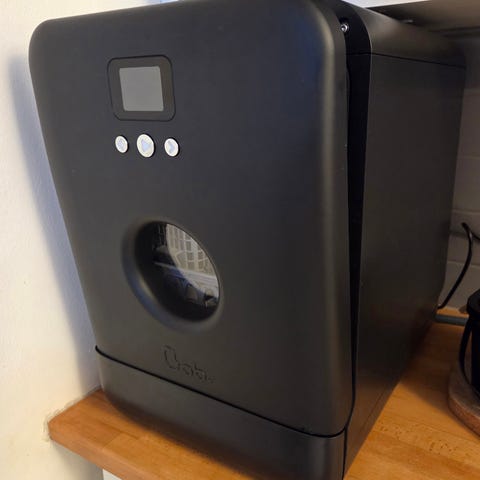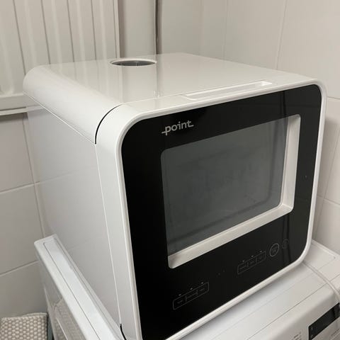 Ylimääräiseksi jäänyt Point PTDW1 pöytätiskikone. Toimii myös ilman vesiliitäntää. Vesi kaadetaan ohjelman alussa päällä olevasta korkista. Toki voidaan myös liittää "perinteisesti" letkulla. Poistoveden voi ohjata ämpäriin tai pesualtaaseen.