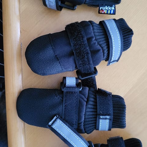 Ei kertaakaan käytetty. Merkistä ei tietoa. Sopivat esim.mäyräkoiran tassulle.