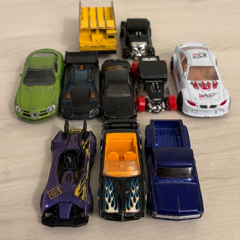 Pikkuvikaisia, paljon käytettyjä pikkuautoja seuraavalle leikkijälle. Sopii vielä leikkeihin