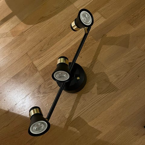 Hyväkuntoinen, musta kattovalaisin viidellä lampulla.