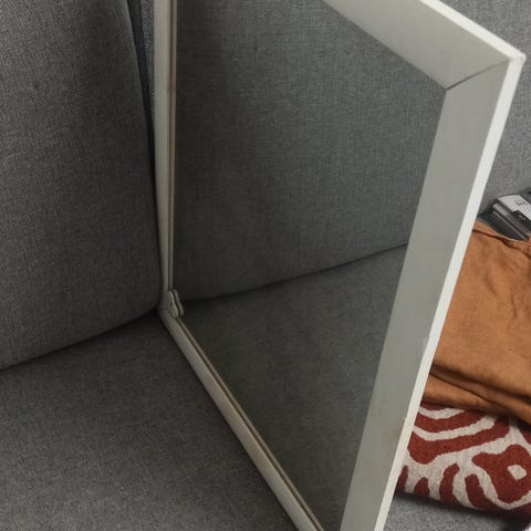 Iso hopeanvärinen peili, jonka reunaosat ovat rapistuneet joistakin kohdista. Koko on 161cmx72cm.