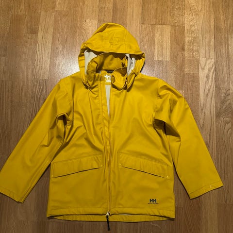 Helly Hansen musta kurapuku. Koko 140. Sadetakin hihassa vähän likaa, huuhdon ennen kuin postitan. Housuissa parisen naarmua, ollut meillä hyvät, kunhan ei istu enää vesilätäköissä..