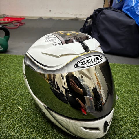 Zeus täyskypärä moottoripyörä- tai skootterikäyttöön. Kypärä on umpinainen malli kirkkaalla visiirillä ja tummalla etuosalla. Väri on musta, ja sisäpuolella on pehmustetut vuoraukset sekä leukahihna pikalukolla. Soveltuu aikuiselle motoristille tai skootterin kuljettajalle. Myydään tarpeenmattomana.