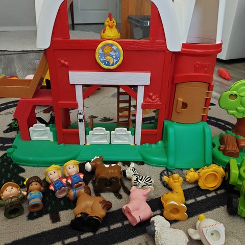 Fisher-Price Little People maatilaleikkisetti. Mukana Little People -hahmoja sekä useita maatilan eläinfiguureja. Äänet toimii.