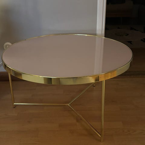 Nätti ja jämäkkä sohvapöytä, molemmilla tasoilla marmorikuvioinen pinta. Hopeanvärinen metallirunko, on jämäkkä ja kaikin puolin siisti.