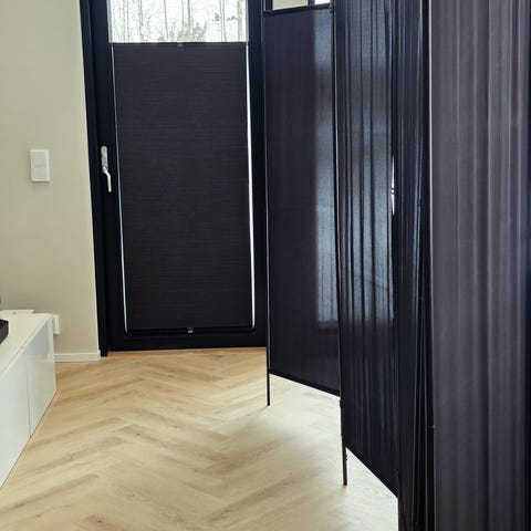 Myydään musta metallinen tilanjakaja mitat korkeus 220cm, leveys 90cm, syvyys 3 cm. Nouto Espoonlahdesta.