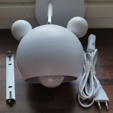 Varjostin ja jalusta ovat siistit ja hyväkuntoiset. Virtajohdon kangaspinnassa on pistokkeen juuressa pientä rispaumaa (katso kuva). Johto on ehjä, mutta pinnan kuluma on huomioitu hinnassa.