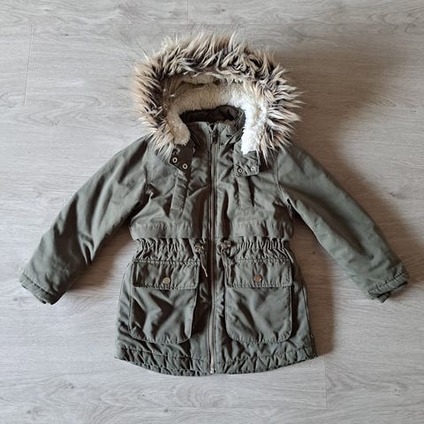 Myydään vaaleanpunainen suloinen talvitakki, merkki McKenzie. Kokolapussa lukee 7-8v., arvioisin että sentteinä menee ehkä 116-122cm pitkälle. Pari ihan pientä jälkeä, joista kuva viimeisenä.