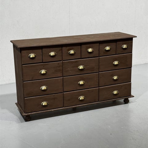 Hakusanat: säilytys, rustiikki, vetolaatikot, apteekkarin lipasto, metallivetimet