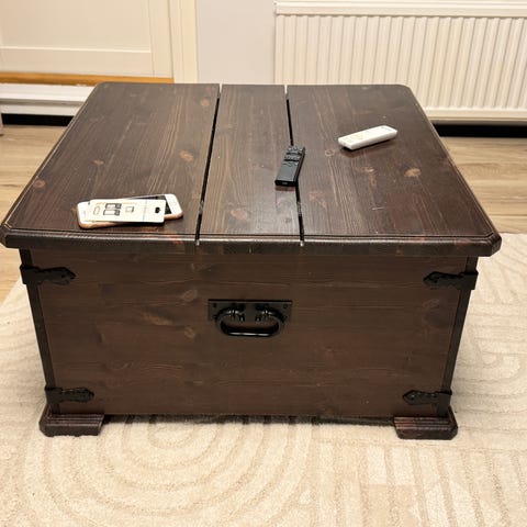 Myydään kalkkimaalilla maalattu arkkupöytä. "Kuluneen" näköiseksi tehty. Melko painava on.