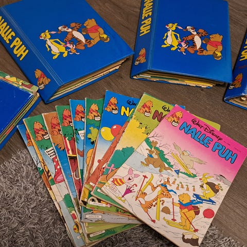 48 kpl Nalle Puh lehtiä vuosilta 1983 - 1988. Kunto pääsääntöisesti hyvä, joitain repeämiä, taitteita ja kynämerkintöjä on.