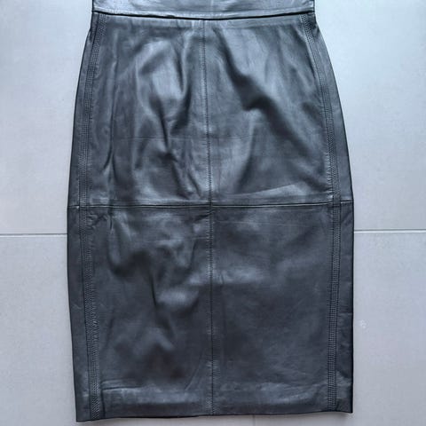 Pepe Jeans naisten nahkahame, erittäin pehmeä, koko M. Väri musta. Hameessa vetoketjutaskut edessä ja halkio takana. Materiaalina nahka, sisäpuolella vuori. Ostin Tallinnassa, mutta on kuitenkin pieni.