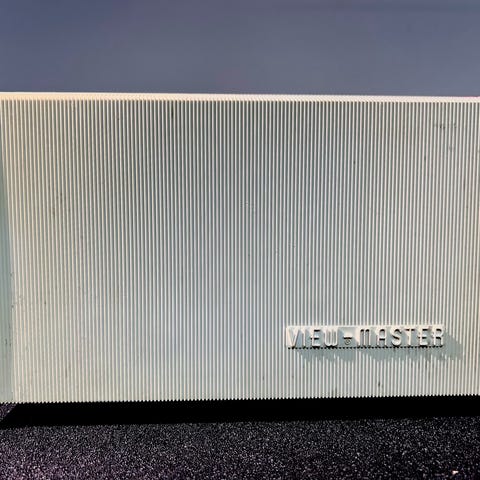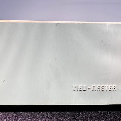 View-Master bakeliittinen säilytyslaatikko, vaalea kansi ja viininpunainen alaosa. Sisällä lokeroita View-Master -kiekkojen järjestelmälliseen säilytykseen. Laatikossa on yhdessä kulmassa kolo, mutta se vaikuta laatikon toimivuuteen. Nouto Tampereelta tai postitus 10,90€.