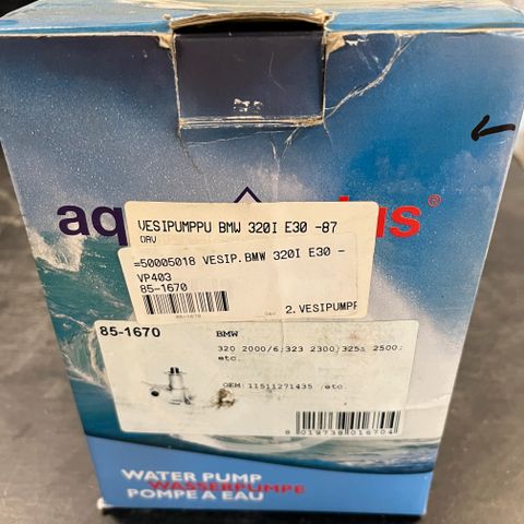 Vesipumppu sopii BMW 3 E30 320 , 325 vm. 9.1983-11.1993 , BMW E28 520 , 525 vm. 6.1981- 9.1991 , BMW Z1 Roadster 2,5 vm. 6.1988- 6.1991