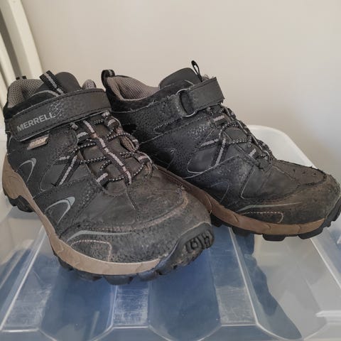 Merrell vk-kengät, koko 32. Käytetty siisti kunto. Paikoin värissä tummentumaa ja pientä käytön jälkeä näkyvissä (näkyy kuvissa).