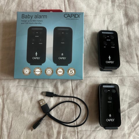 Nelisen vuotta sitten ostettu itkuhälytin. Helppokäyttöinen ja toimiva. Voin tuoda kaupunkiin omien menojen yhteydessä. Lisätietoja linkistä alla⬇️.