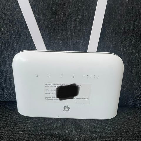 Huawei 4G reititin virtalähteellä. Toimii kaikkien operaattorien SIM-korteilla. Saa kokeilla ennen ostopäätöstä. Nouto Jokelasta tai ToriDiili.